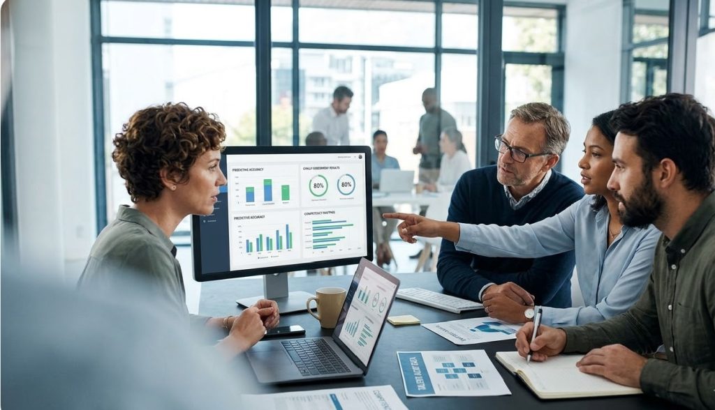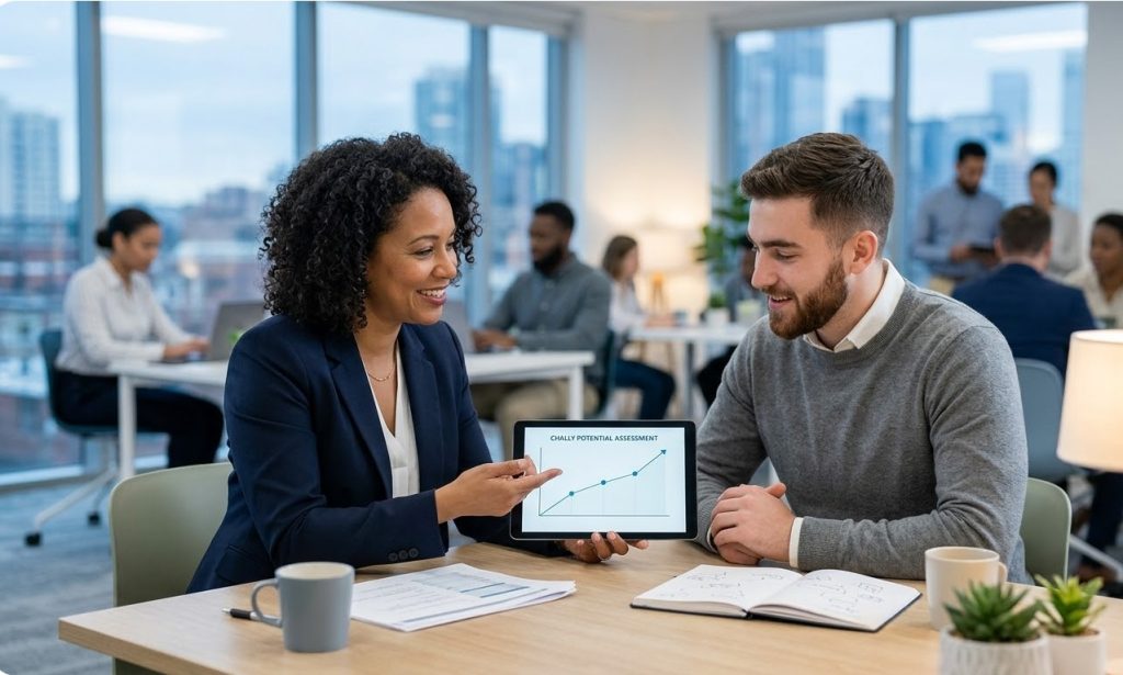 Las evaluaciones predictivas, no solo evalúan a la persona, vinculan esos resultados con las necesidades reales del puesto. El Assessment Chally, por ejemplo, toma una base estadística para determinar las competencias clave de cada puesto y evalúa el potencial natural del candidato para desarrollar cada una de ellas,